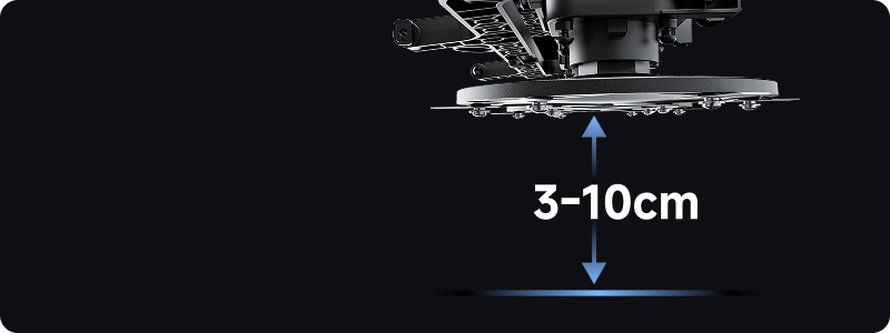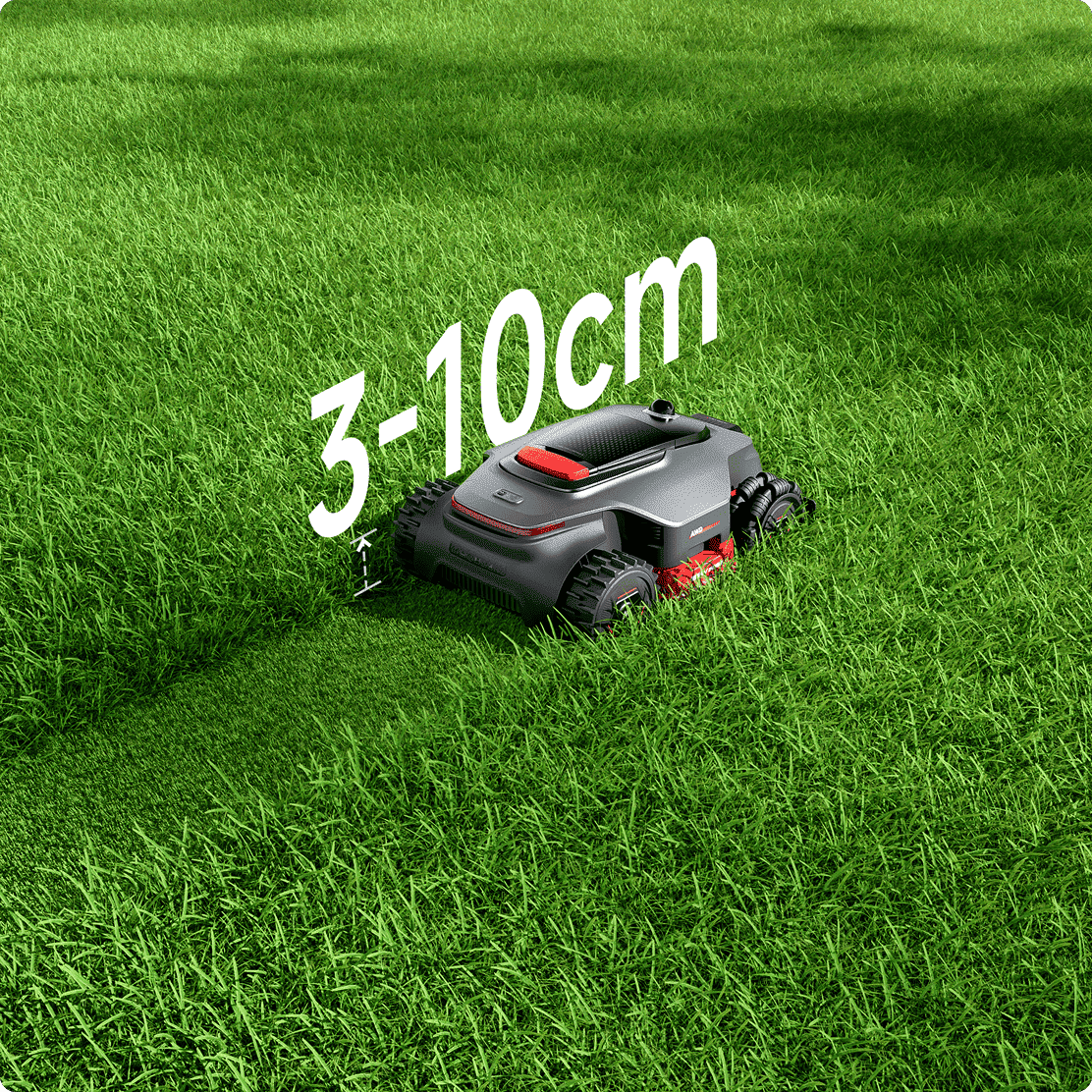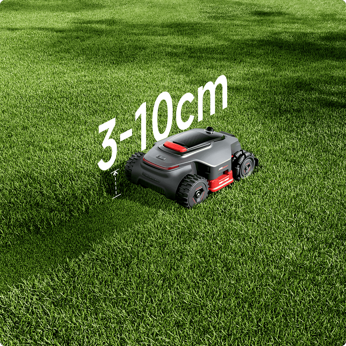 *La hauteur de 3 à 10 cm correspond à la distance entre le disque de coupe et le sol. Donnée issue de nos tests en laboratoire interne.