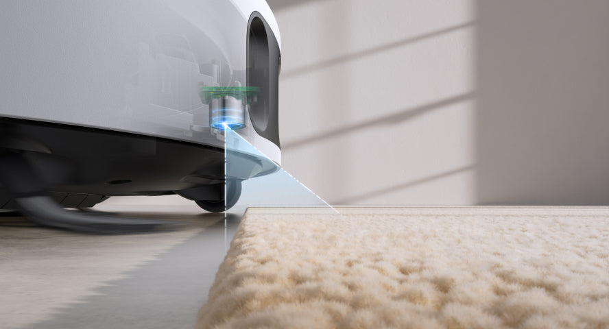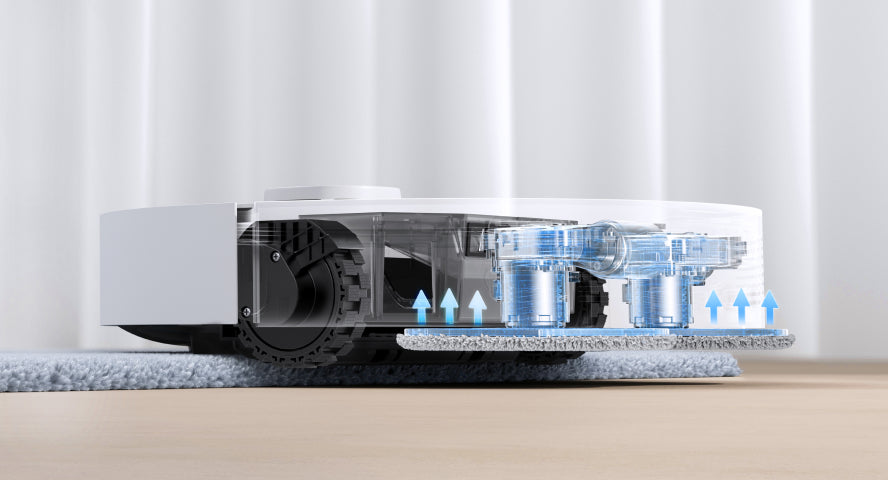 * Levage des serpillières à 10,5 mm : la différence de hauteur du robot aspirateur est de 10,5 mm avant et après le levage des serpillières. Pour les moquettes et tapis dont la longueur des poils dépasse 3 mm, nous vous conseillons de configurer le robot pour qu'il évite les moquettes et tapis à poils moyens et longs via l'application de nettoyage (uniquement en mode nettoyage intelligent des moquettes et des tapis) et pour qu'il protège vos moquettes et tapis de l'humidité.** Double nettoyage des tapis/moquettes : uniquement en mode nettoyage intensif des tapis/moquettes.