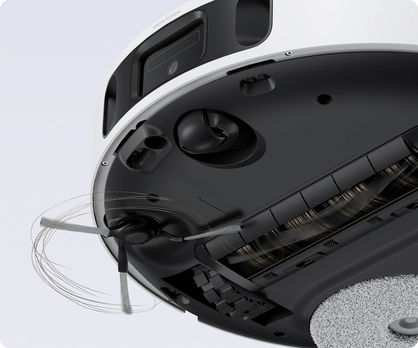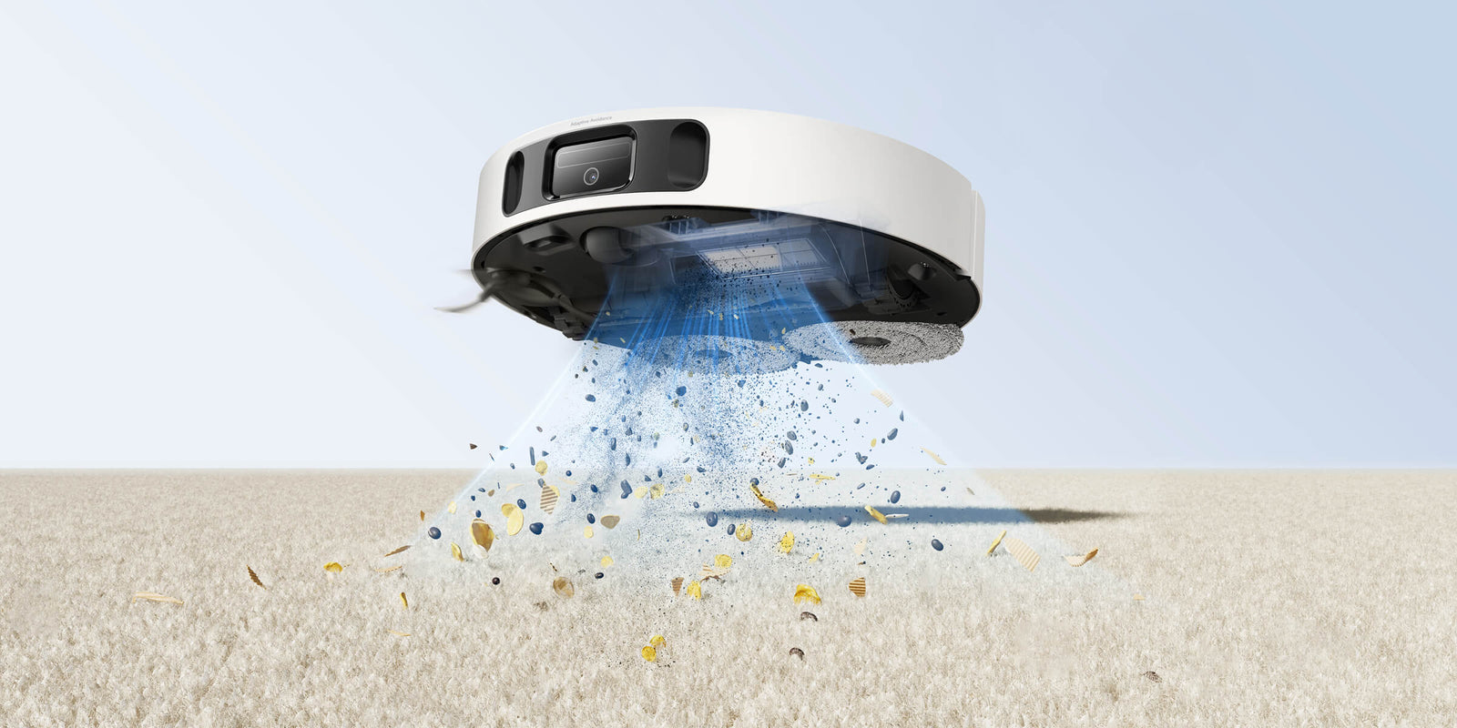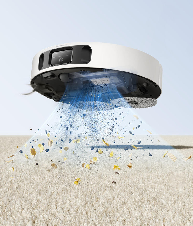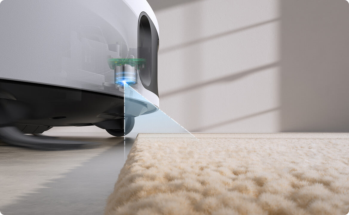 Nettoyage intelligent des tapis/moquettes (levage des serpillières de 10,5 mm, détection de tapis/moquettes à ultrasons et aspiration optimisée des tapis/moquettes)