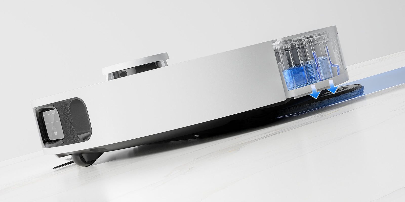 * Levage des serpillières de 10,5 mm : la différence de hauteur du robot aspirateur est de 10,5 mm avant et après le levage des serpillières.