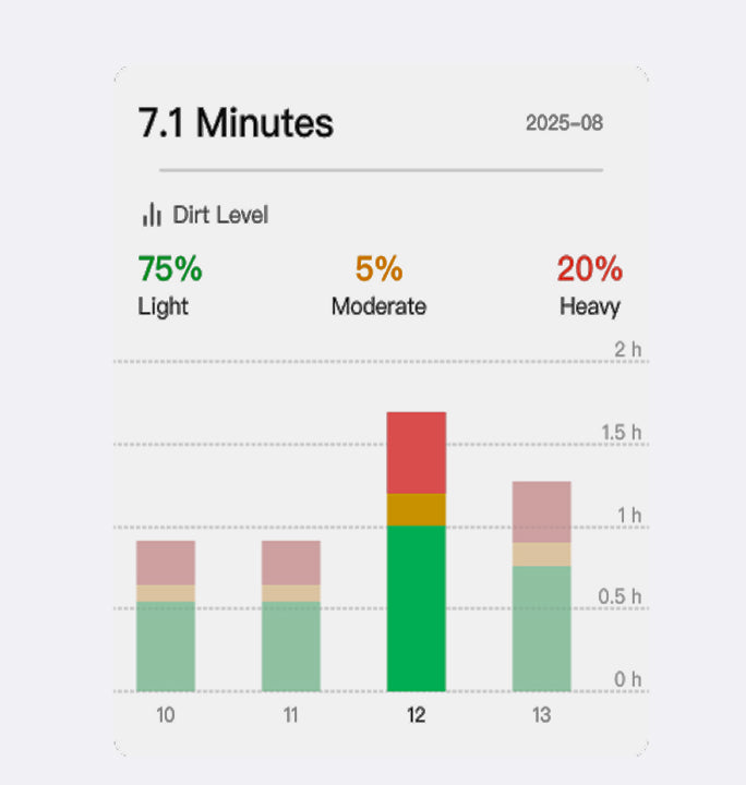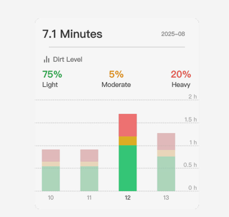 Enregistre la durée, le mode et l'utilisation de chaque séance de nettoyage pour faciliter la visualisation et l'analyse.