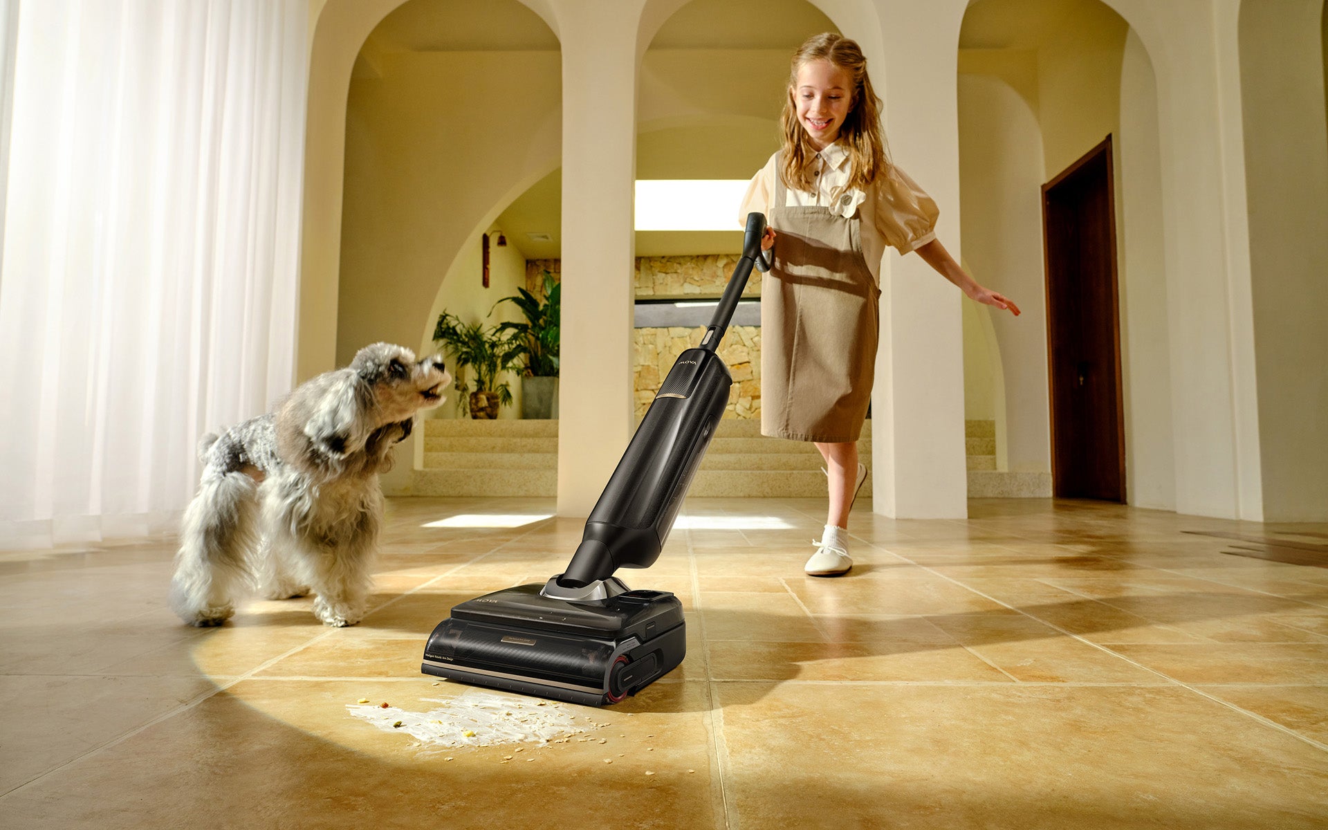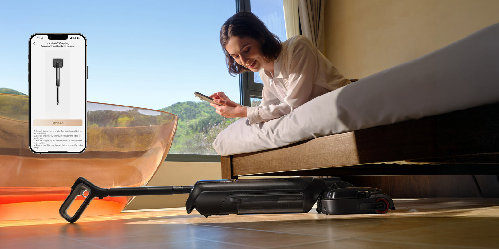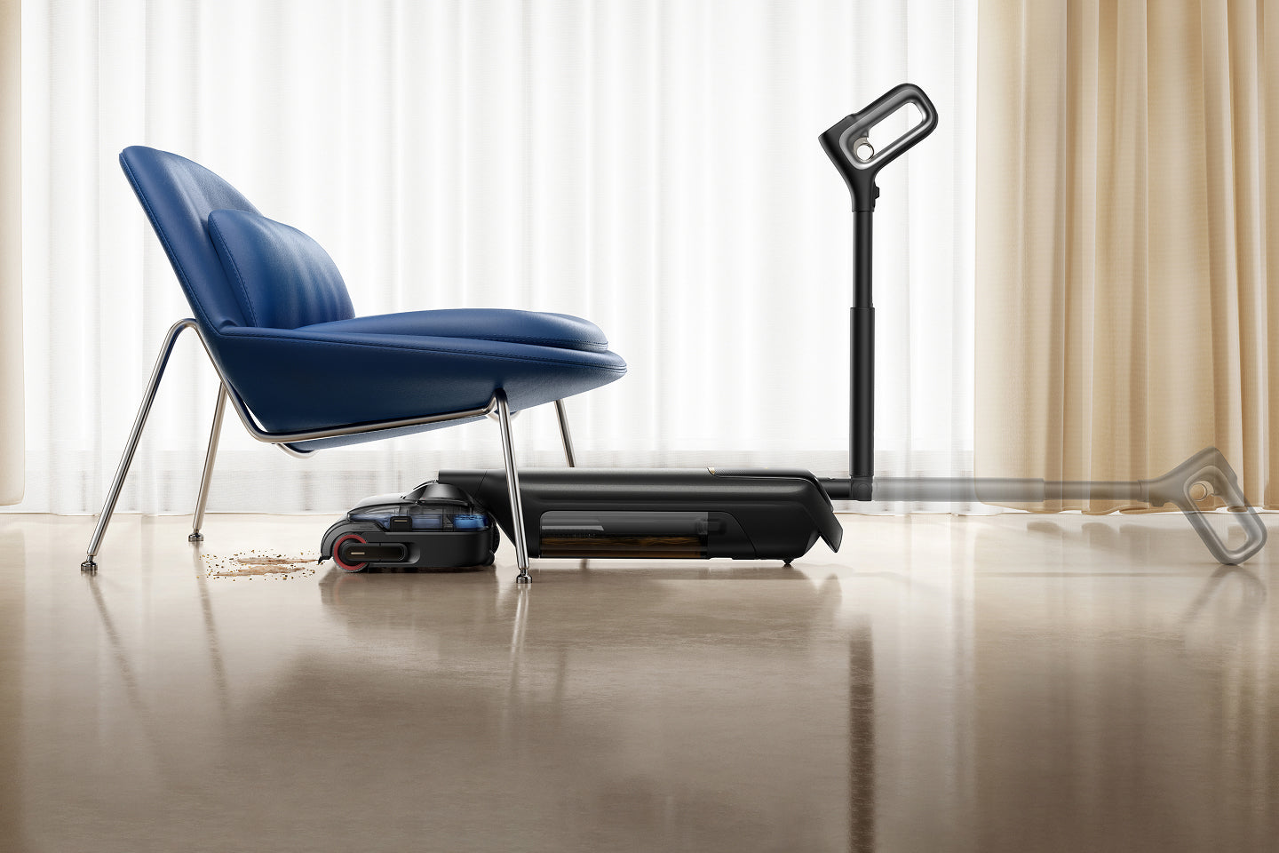 *Premier appareil au monde : certifié par Frost & Sullivan, sur la base des recherches menées sur le marché mondial des aspirateurs eau et poussière. Cet aspirateur est doté d'une structure de bras robotique pliable et extensible, permettant au manche de se plier à 90 degrés et de s'ajuster en longueur pour s'adapter aux utilisateurs de différentes tailles et à divers scénarios de nettoyage. L'enquête a été réalisée en avril 2025. (Numéro de rapport : FS-2025-MPC-439377).