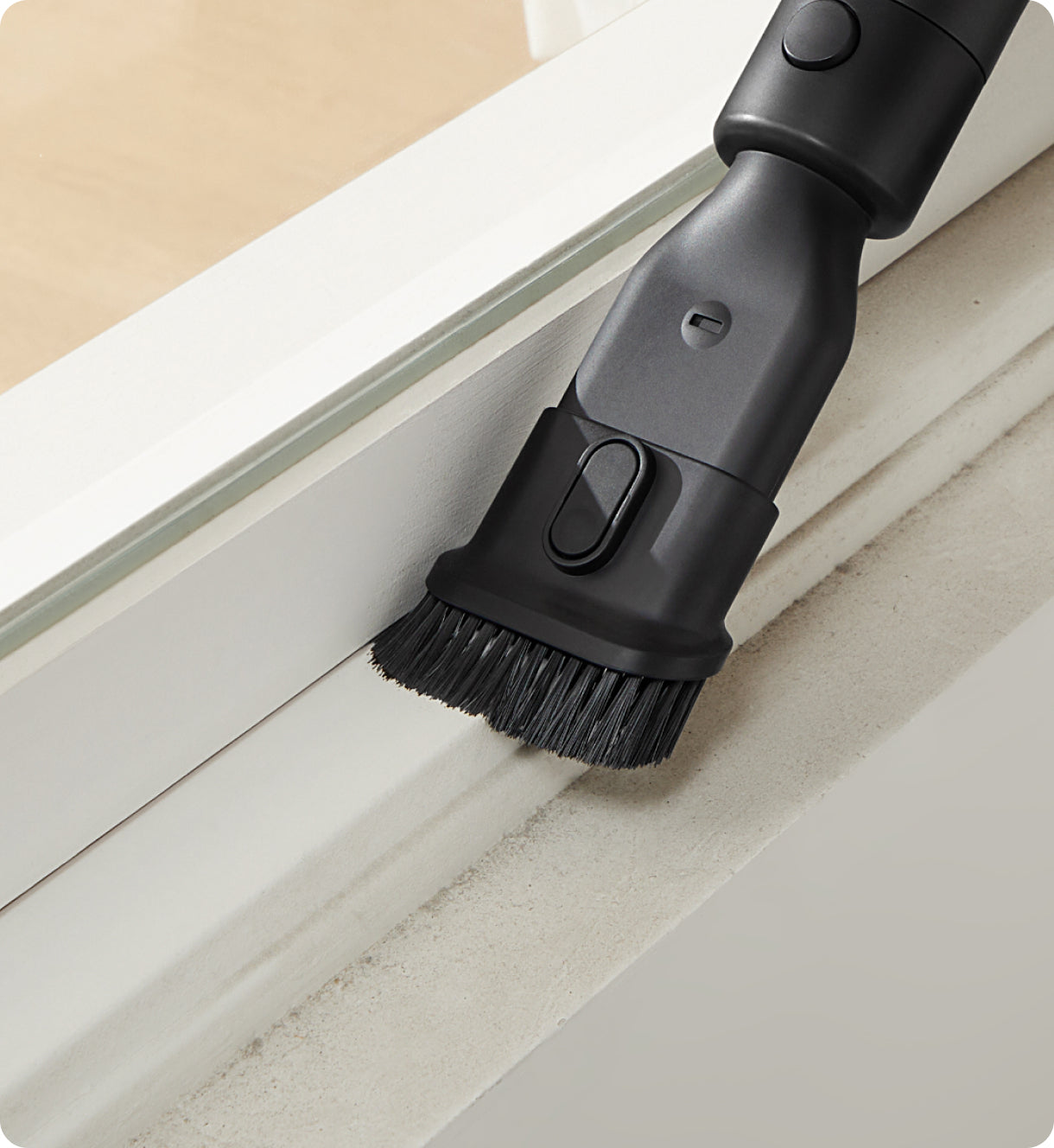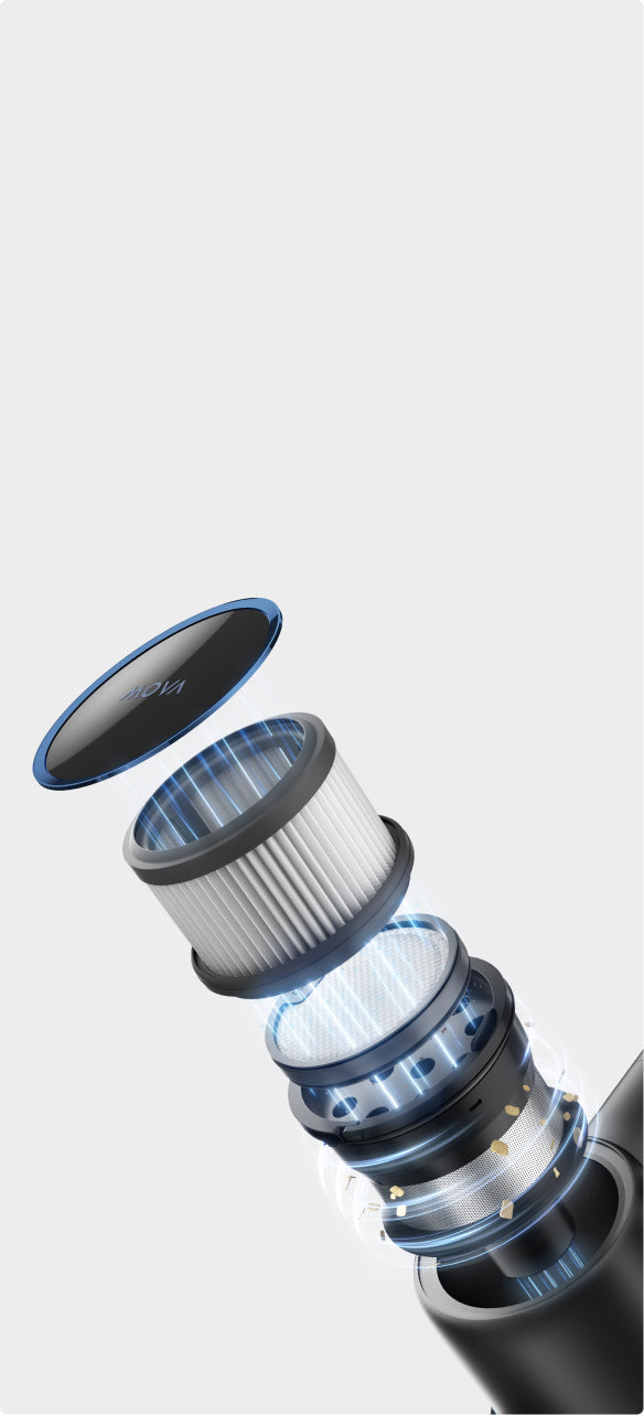 * 90 min : sur la base des tests en mode Éco avec l'outil combiné large. Le temps d'utilisation réel peut varier. Veuillez noter que l’emballage ne contient qu’une seule batterie. Si vous souhaitez acheter d’autres batteries, adressez-vous aux magasins Mova.