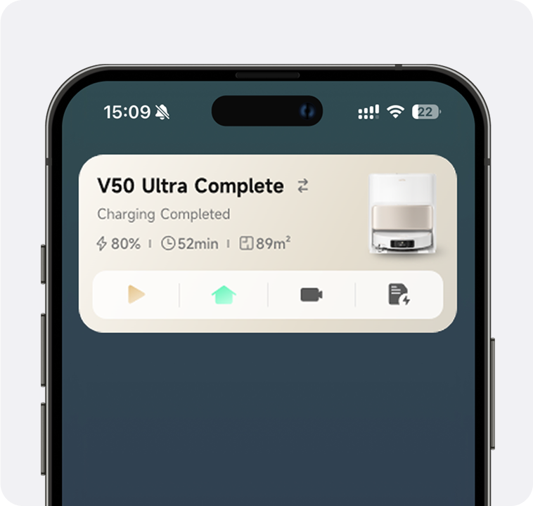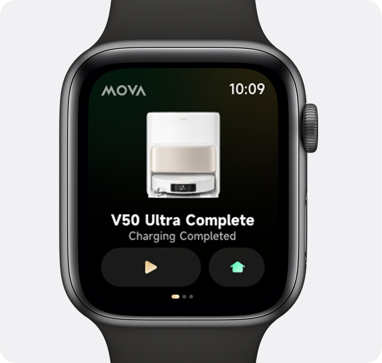 Commandez le V50 Ultra directement depuis votre Apple Watch, pour une nouvelle façon simple de gérer votre nettoyage.