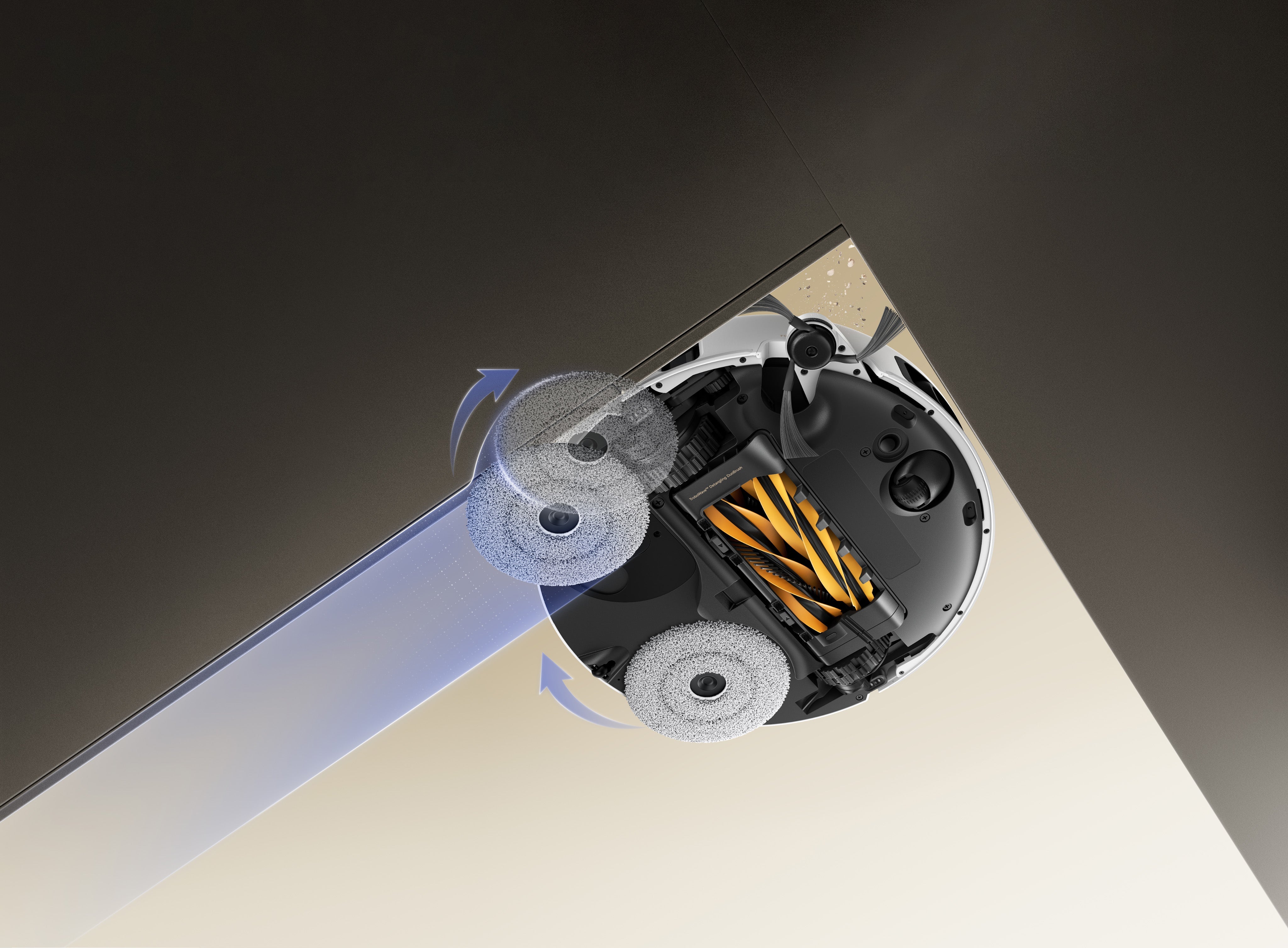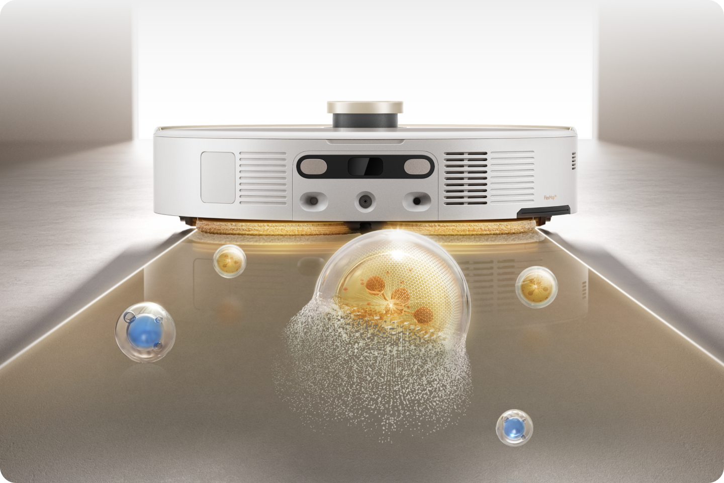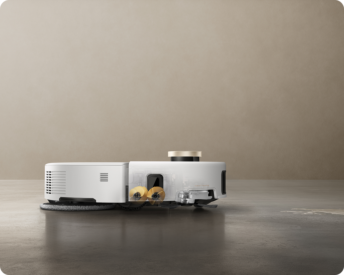 *260 tr/min : d'après des tests réalisés dans notre laboratoire interne. Les performances réelles peuvent varier en fonction de l'utilisation. La vitesse par défaut de la serpillière est de 180 tr/min. Lorsque des saletés solides ou liquides sont détectées, elle passe automatiquement à la vitesse maximale de 260 tr/min pour un nettoyage plus efficace.