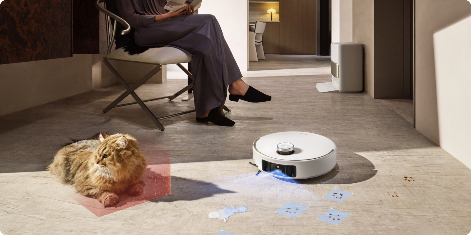 Nettoyage intelligent en temps réel des espaces que vous fréquentez et des zones occupées par vos animaux de compagnie.