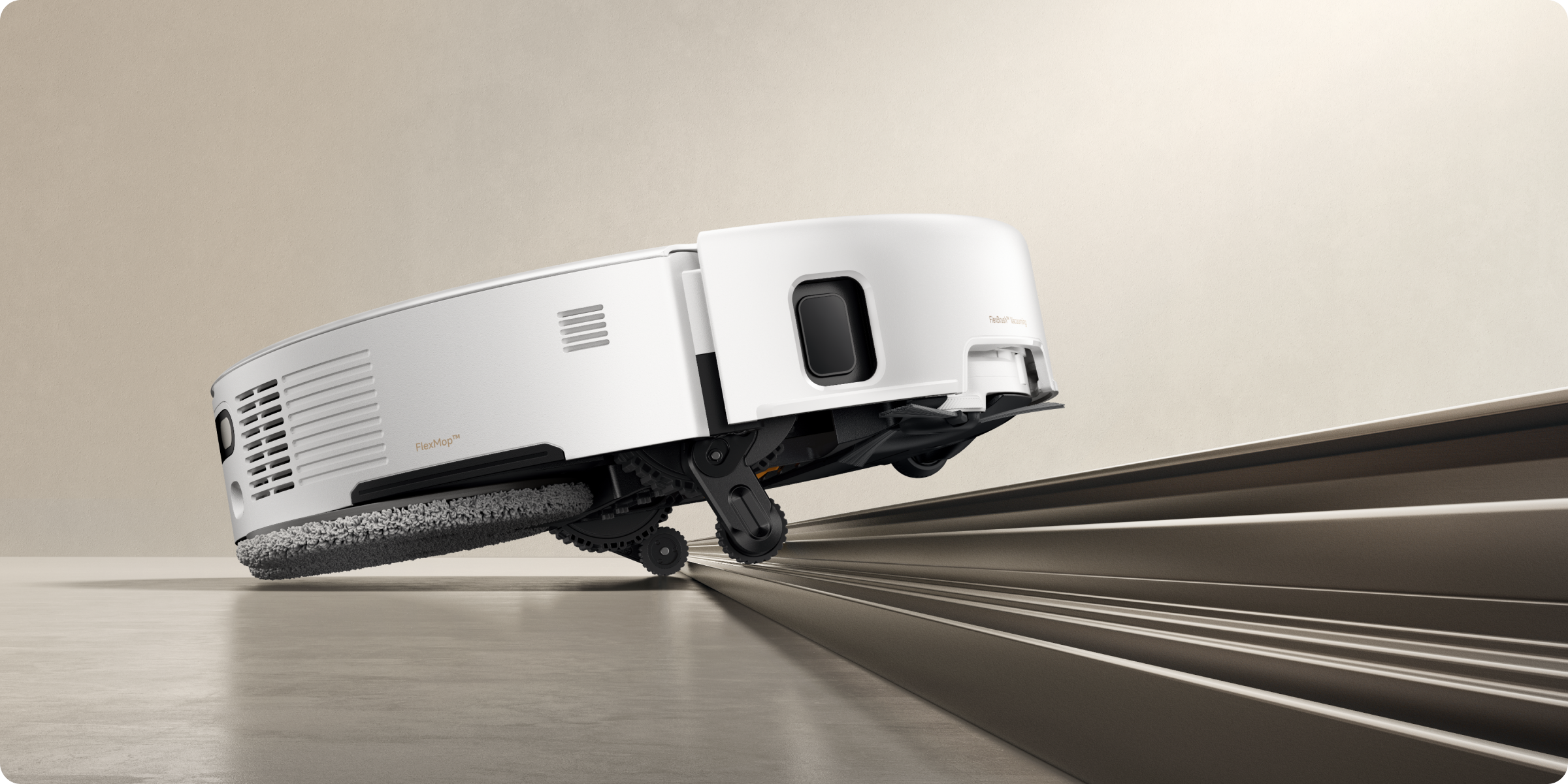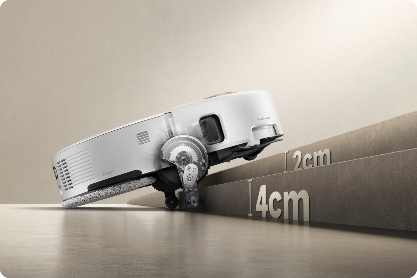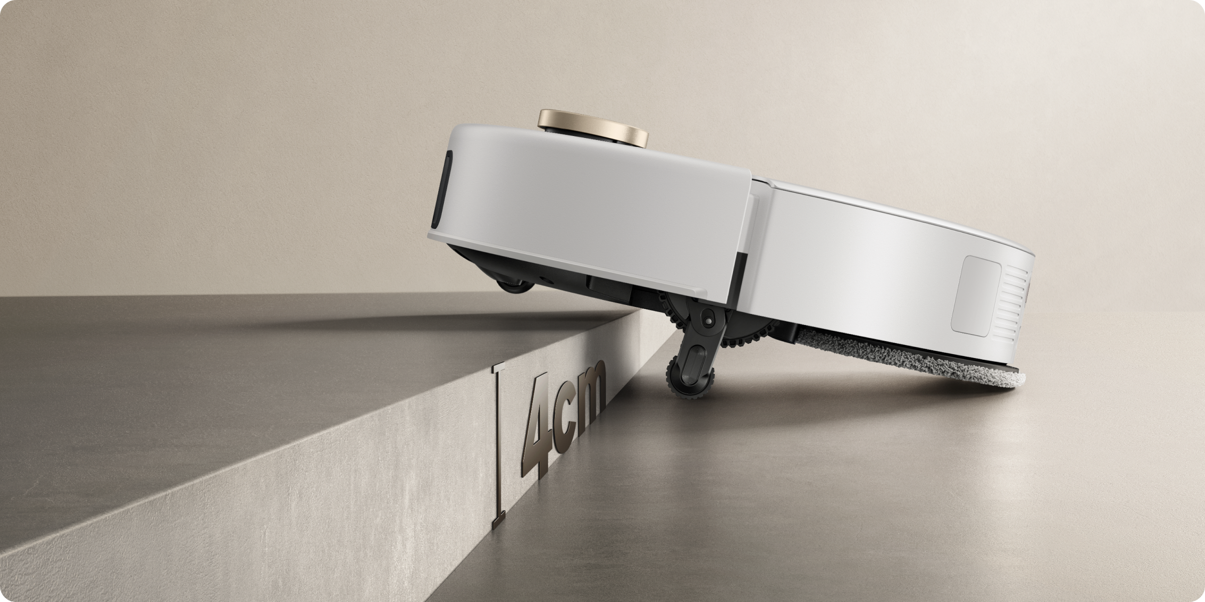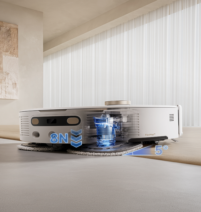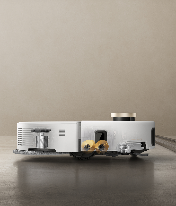 Le système StepMaster™ utilise des pieds robotiques rétractables pour soulever le châssis et franchir des obstacles jusqu’à 6 cm de haut*. Il permet un nettoyage en profondeur dans des environnements complexes et un retour sans effort.
