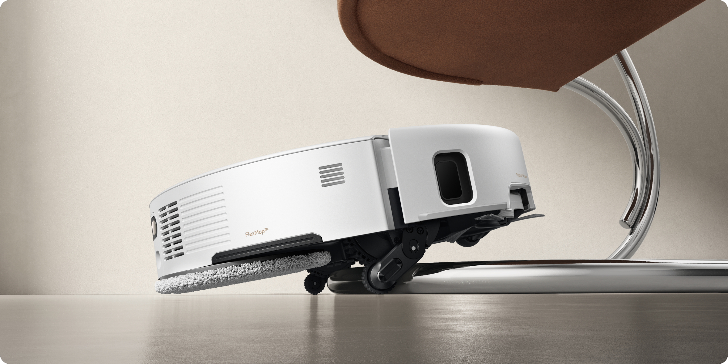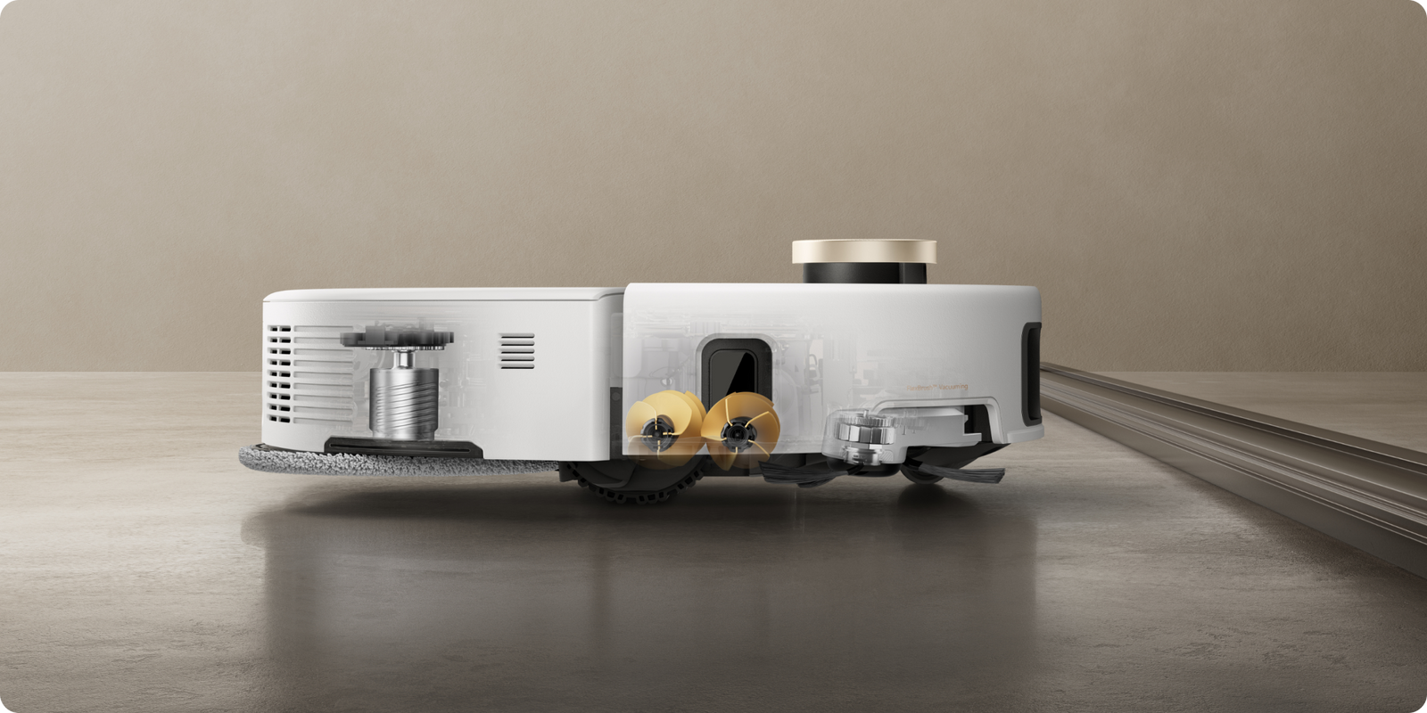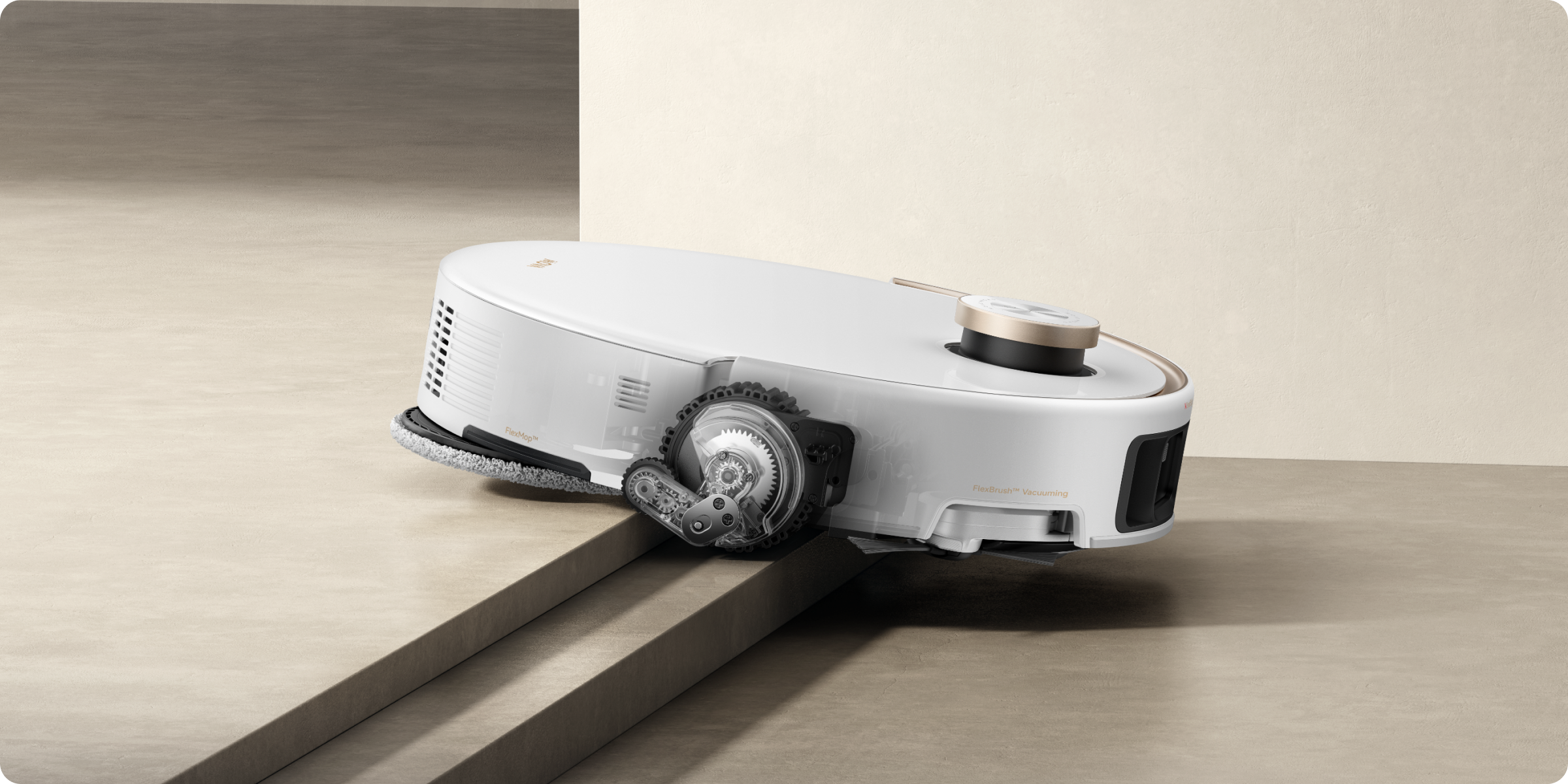 Le système StepMaster™ utilise des pieds robotiques rétractables pour soulever le châssis et franchir des obstacles jusqu’à 6 cm de haut*. Il permet un nettoyage en profondeur dans des environnements complexes et un retour sans effort.