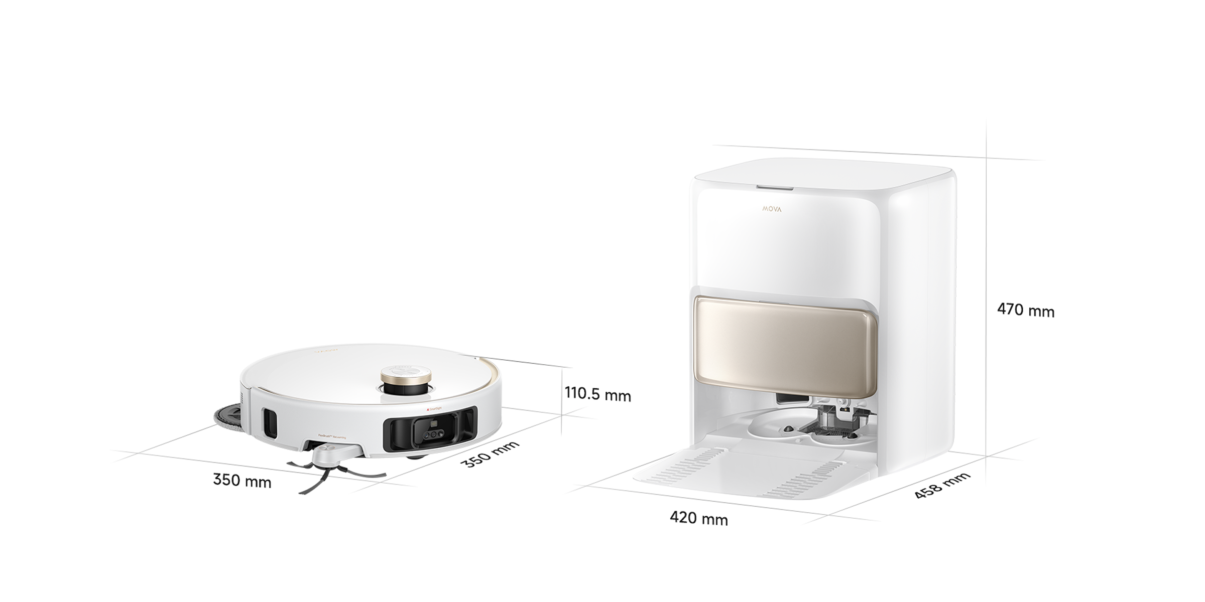 Dimensions du robot aspirateur 350 x 350 x 89,5 mm (DToF rétracté)