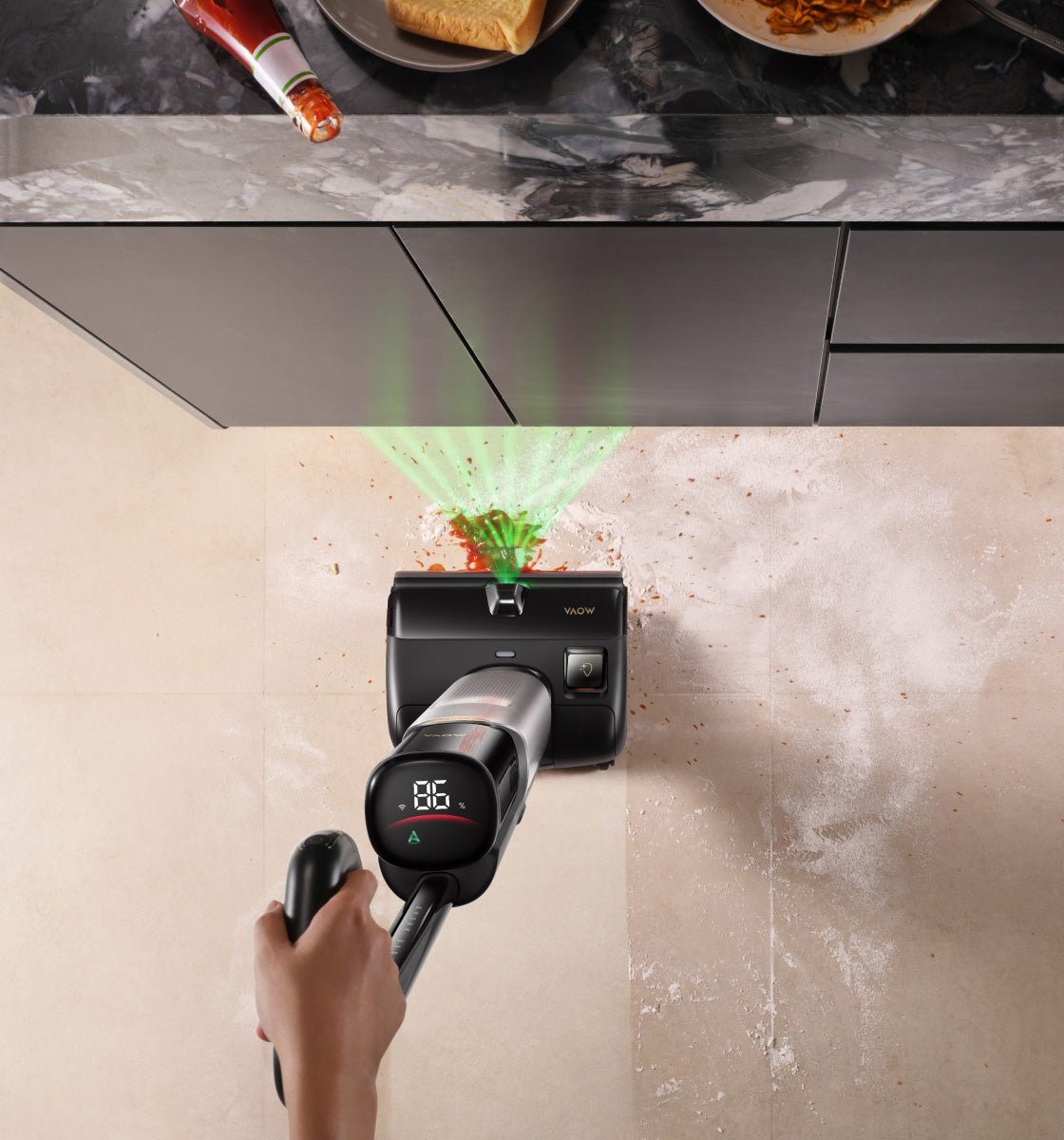 L'affichage LED et les invites vocales sont là pour vous guider naturellement et permettent de contrôler les différentes étapes de nettoyage.