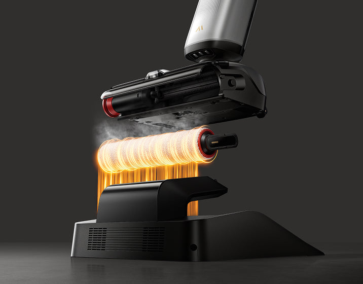 Le MOVA X4 Plus utilise de l'eau bouillante pour dissoudre la graisse et la saleté sur la brosse et lance automatiquement un nouveau lavage si des saletés persistent. Ainsi la brosse et l'intérieur de la base restent impeccables sans avoir à les nettoyer manuellement.