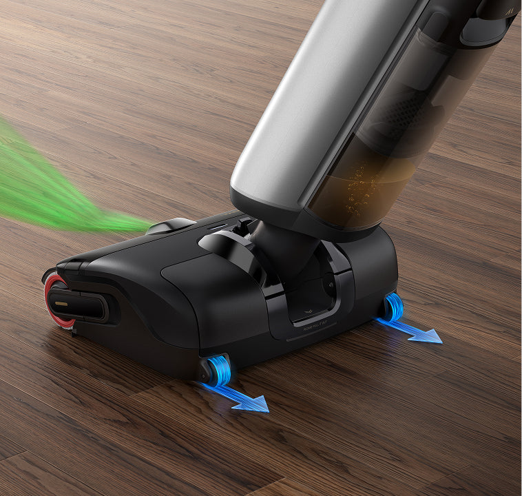 Le puissant moteur offre une forte aspiration, associée à une brosse rotative à grande vitesse qui traite habilement les débris secs et humides.