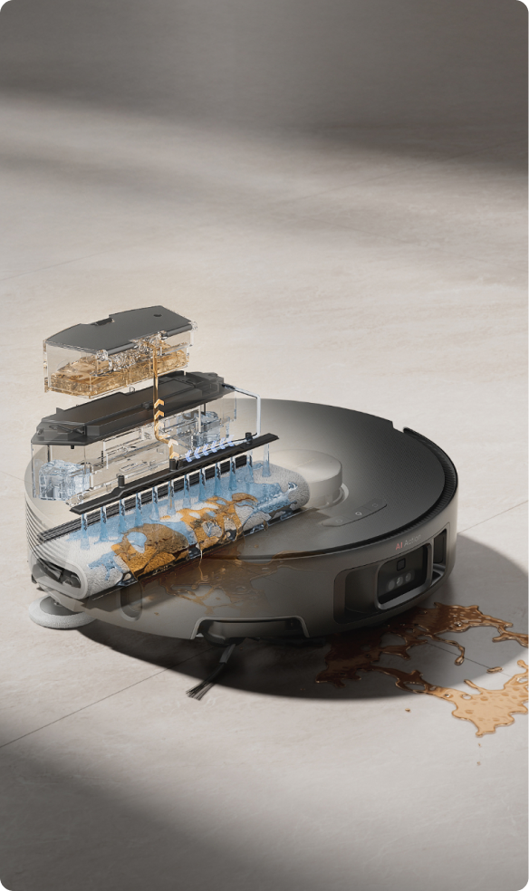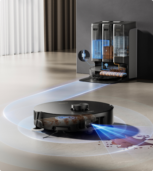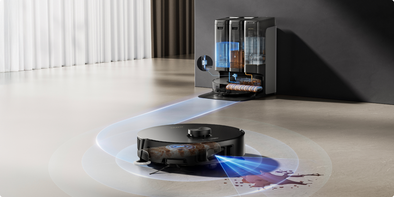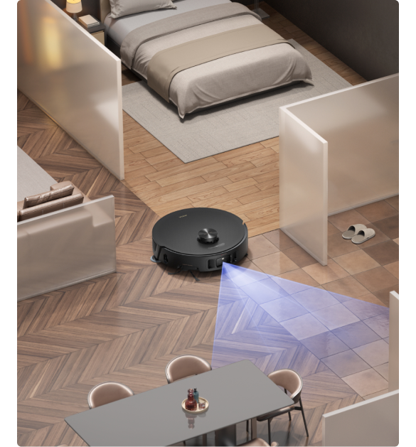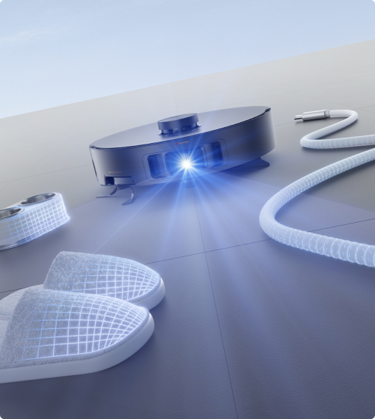 Équipé d'un système LiDAR de conduite autonome et d'une vision binoculaire alimentée par l'IA, il navigue facilement dans des environnements domestiques complexes, planifiant des itinéraires, évitant les obstacles et se déplaçant en douceur. Capable de reconnaître plus de 160 types d'obstacles*, y compris la détection de 100 % des fils, pour un nettoyage sûr et efficace.