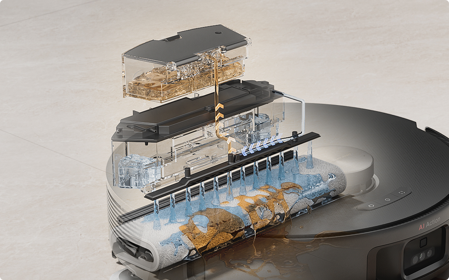 MOVA Z50 nettoie plus intelligemment grâce à la circulation d'eau ultra chaude en temps réel, ce qui permet de maintenir la serpillière de type chenille propre.Le tissu de la serpillière couvre une plus grande surface et permet un nettoyage en profondeur avec moins d'efforts.