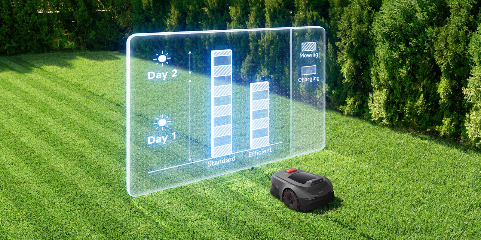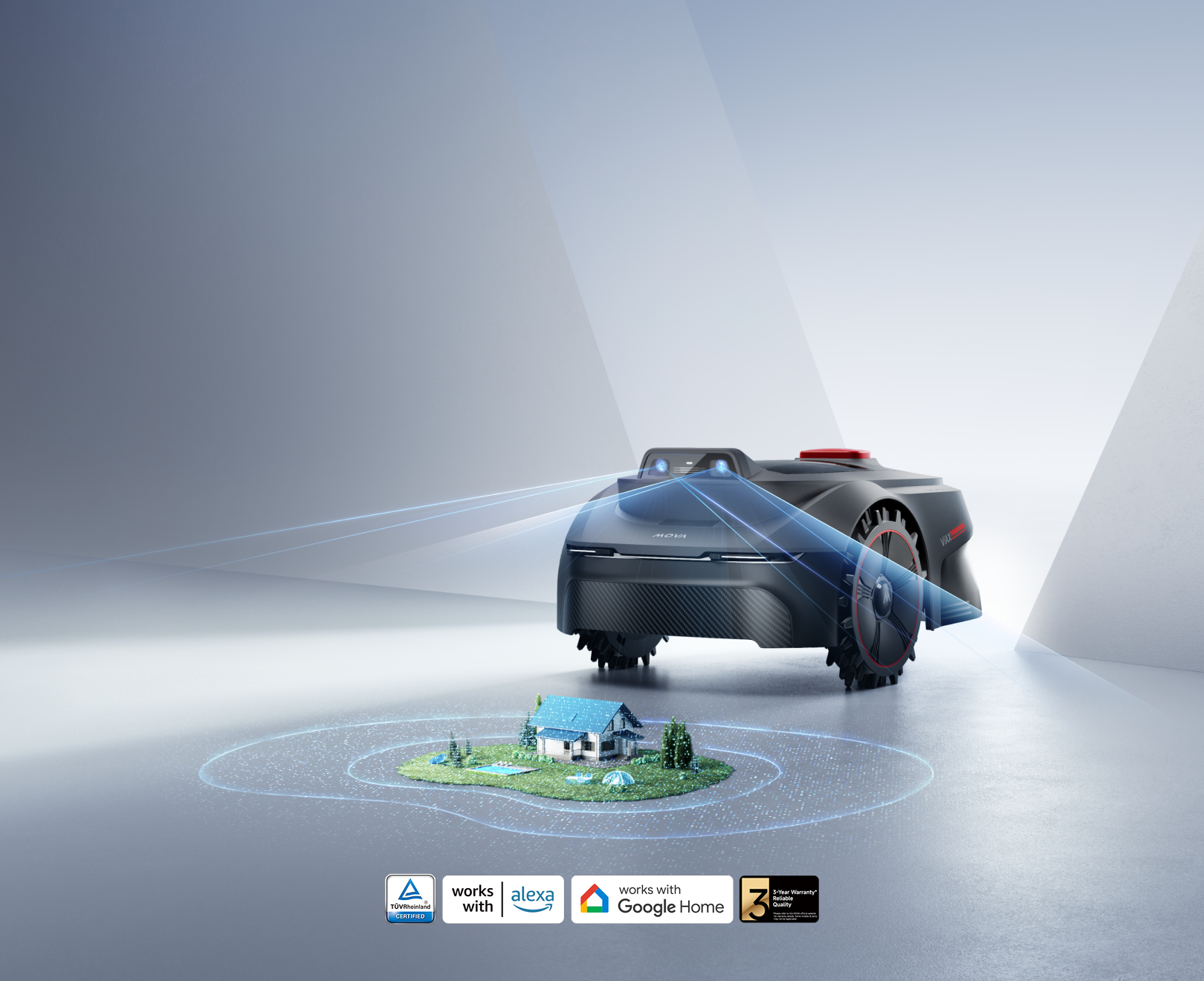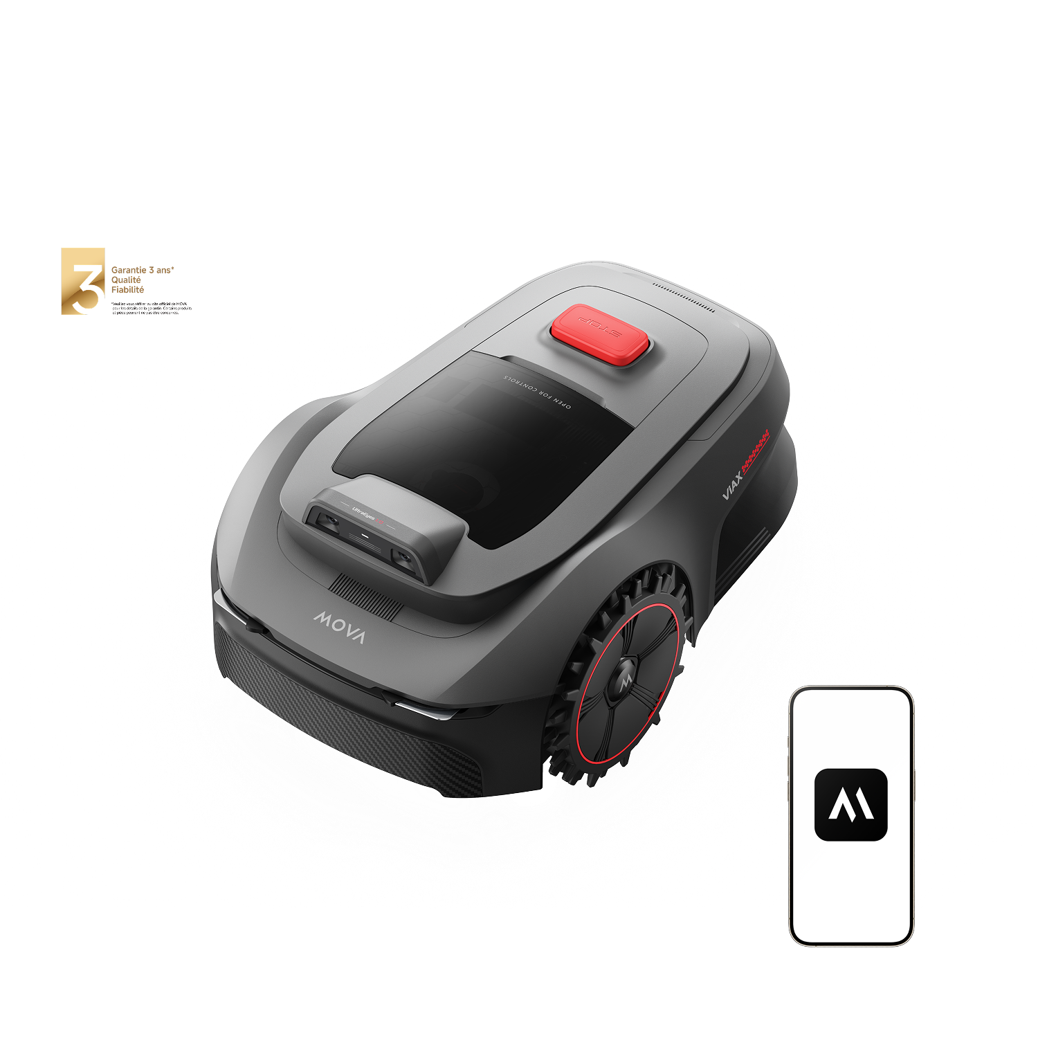 Grâce à la technologie UltraEyes™ 1.0, la tondeuse fait aussi office de système de sécurité pour protéger vos espaces verts via l’application MOVAhome, avec une protection des données certifiée TÜV Rheinland pour garantir votre confidentialité.