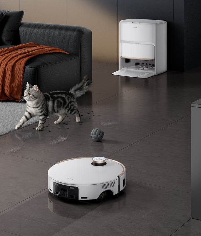 Découvrez la base tout-en-un : elle recharge, lave, vide et remplit automatiquement. Un vrai gain de temps pour une maison propre sans lever le petit doigt.